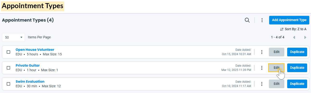 Changes to an Appointment Type, such as assigning Policy Groups, apply only to new bookings. Previously booked appointments are not affected. You can also assign Policy Groups when creating a new Appointment Type. Learn more in our article Create an Appointment Type.
