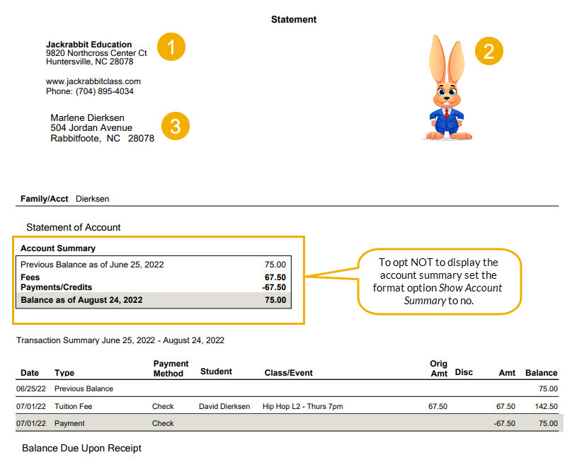 Use this report to generate statements to fit your organization's needs. This may include using the Search Criteria to print statements by Enrollment Status and by Category 1, 2, or 3 as needed.